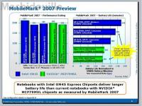 If Intel could not compete concerning 3D rendering with the Nvidia chipset 9400M, the above slides were designed to demonstrate that for almost all other functions of the chipset their solutions were better, from power consumption to video quality including memory bandwidth.